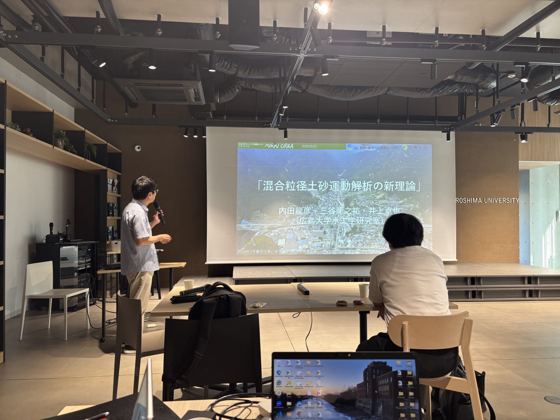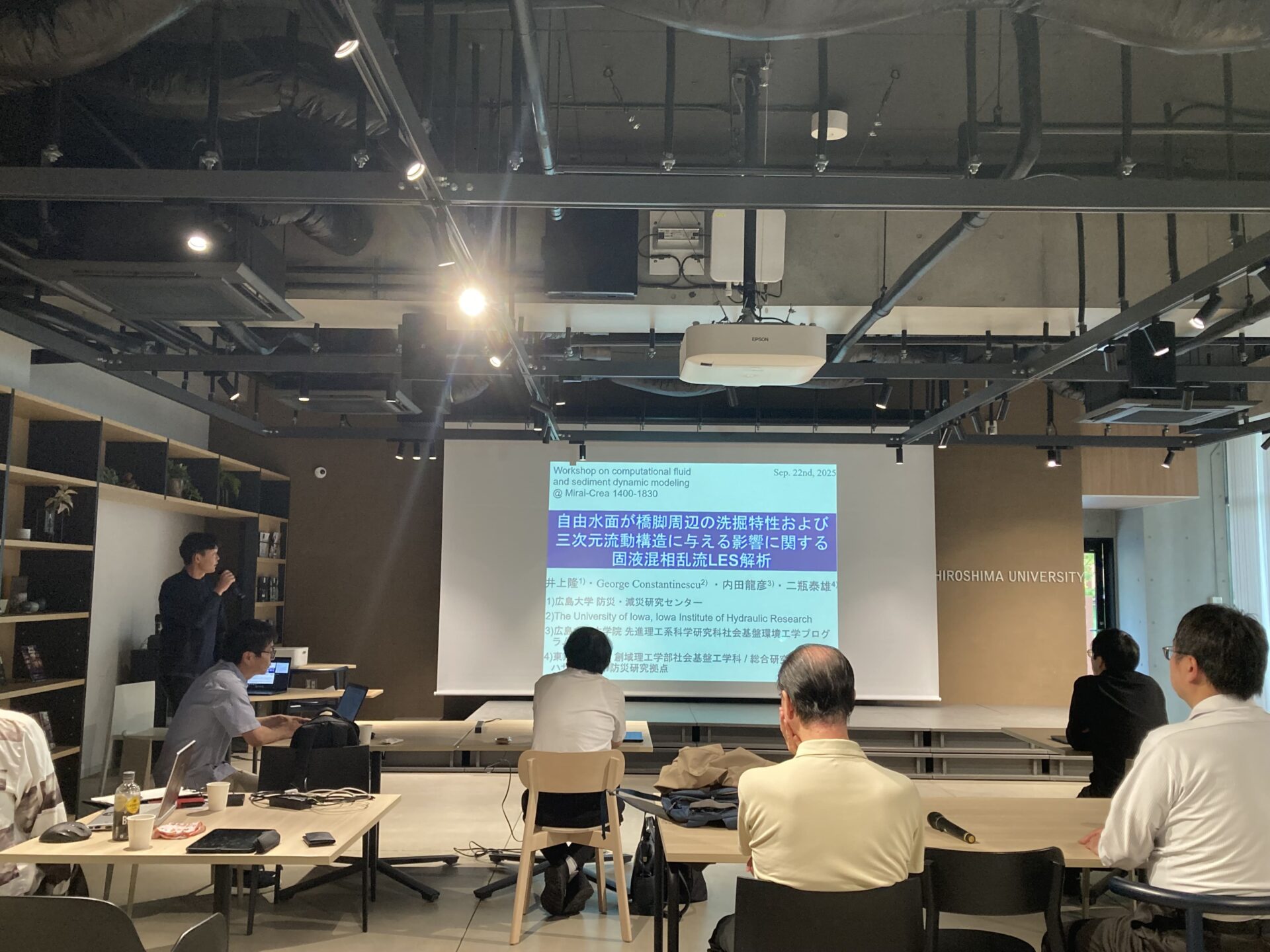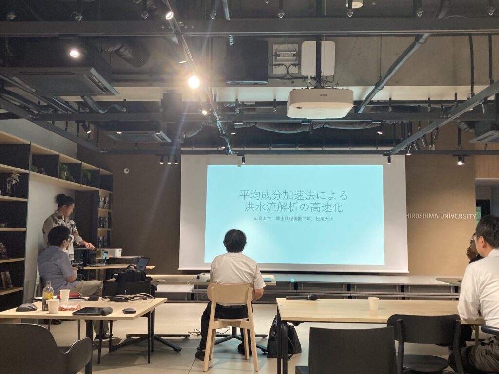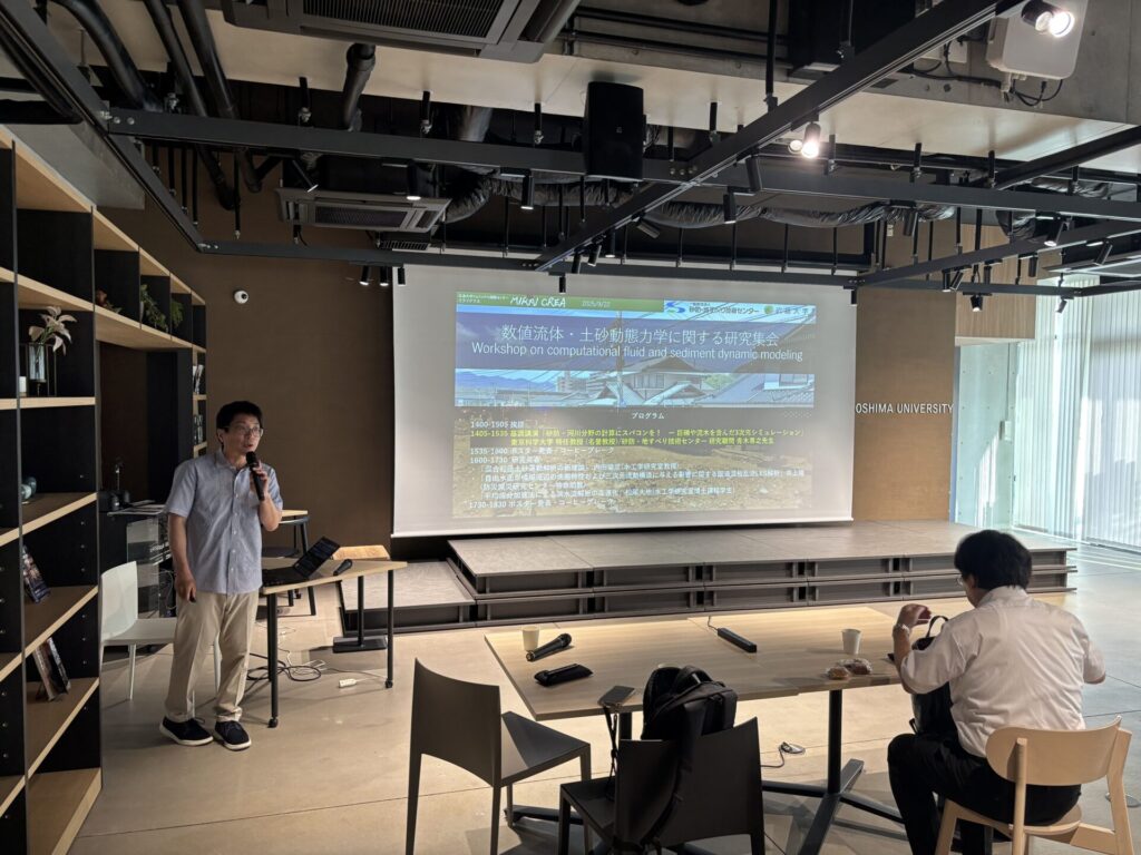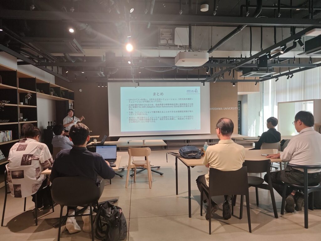 9月22日に東京科学大学 特任教授 (名誉教授)/砂防・地すべり技術センター 研究顧問 の青木尊之先生を本学にお呼びし,数値流体・土砂動態力学に関する研究集会を開催しました.また,砂防・地すべり技術センターから志水さん、嶋さん、吉田さんにもご参加いただきました.